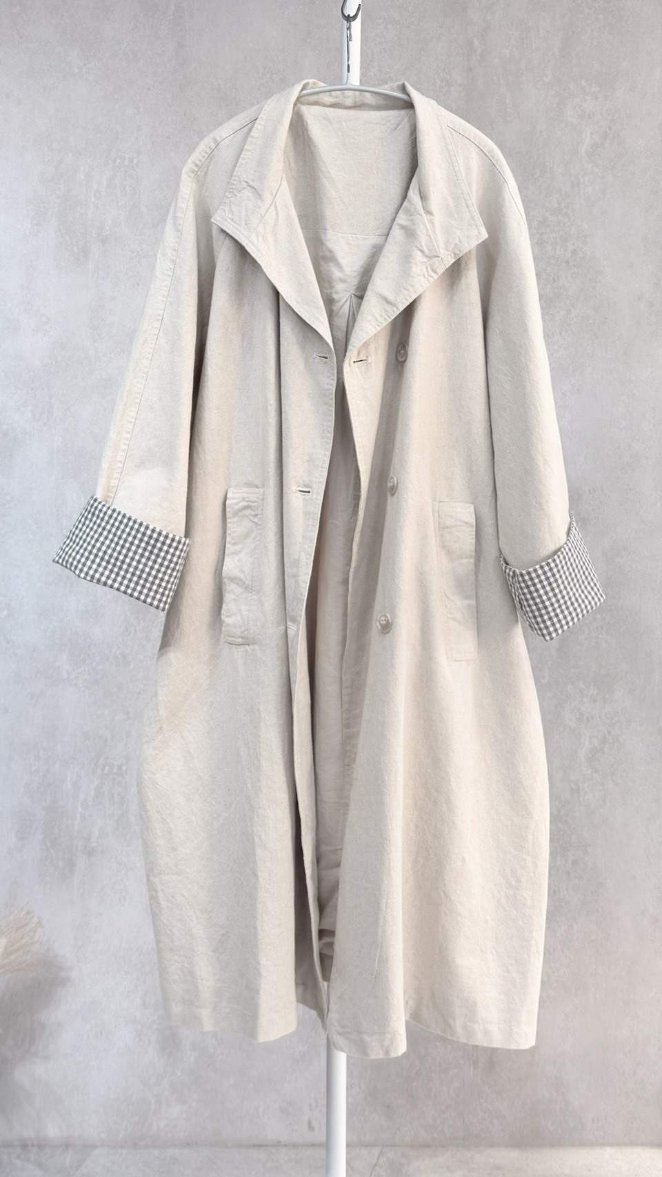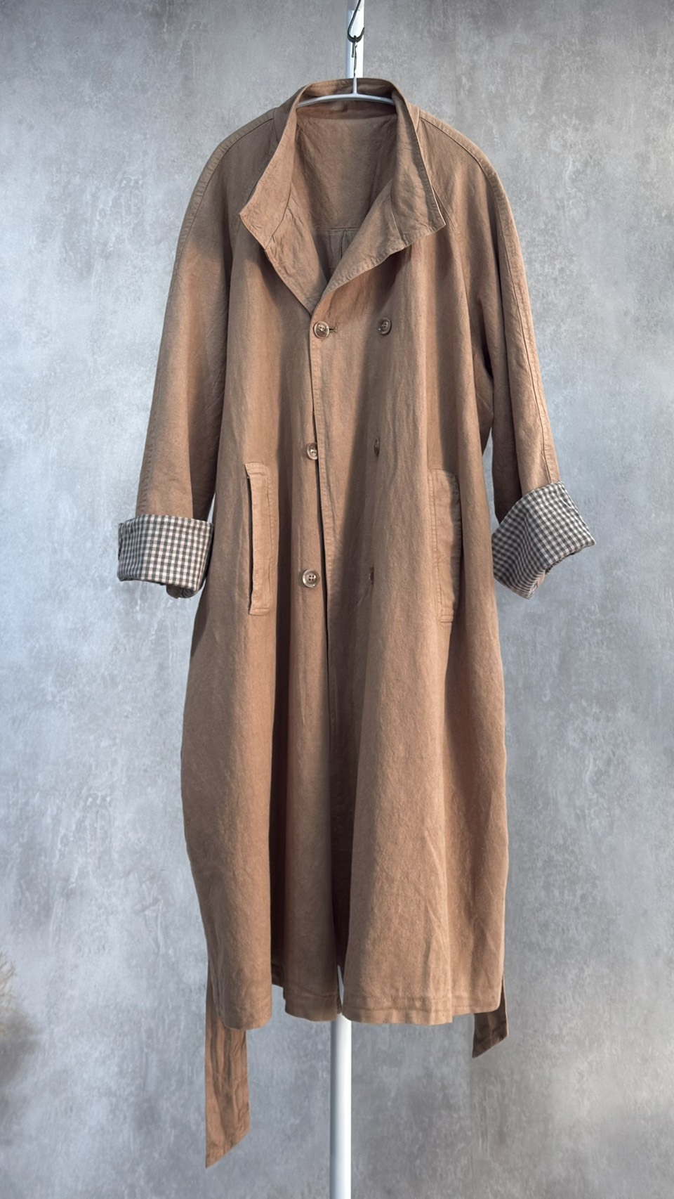 布料是嚴選的挺質純麻,腰帶繫起來非常有氣勢