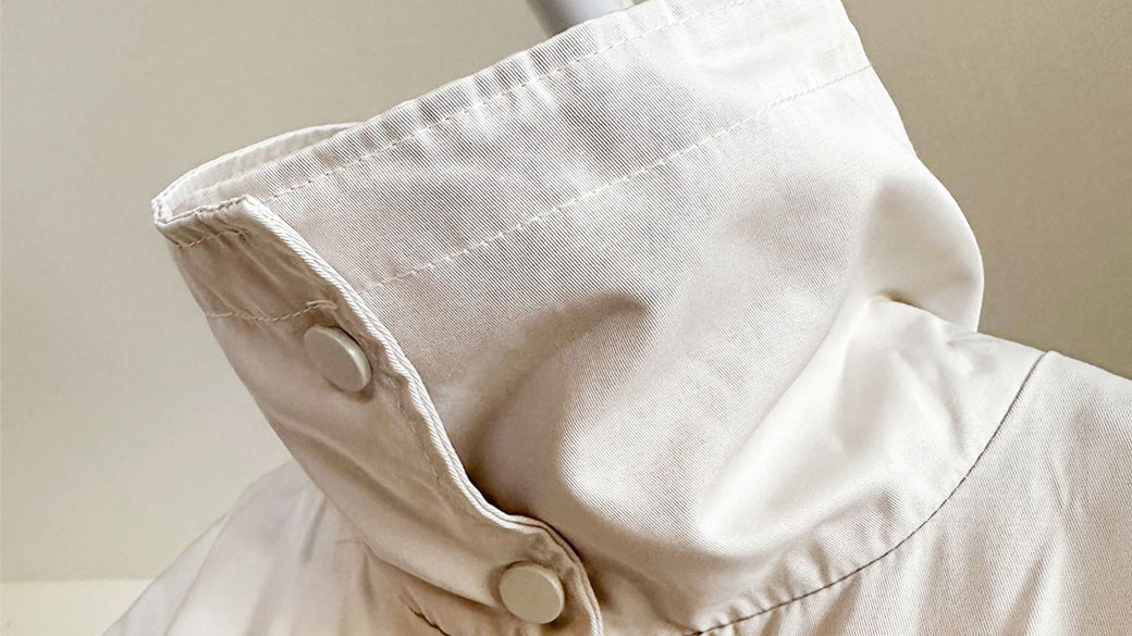 特殊的長型領口扣起來、打開領口